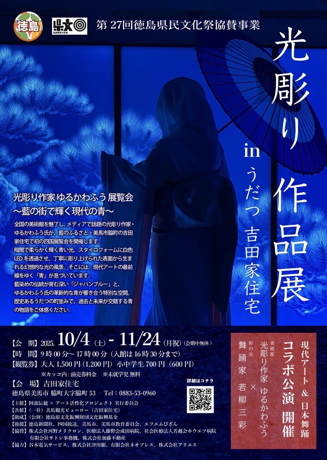 全国の美術館を魅了し、メディアで話題の光彫り作家・ゆるかわふう氏が、藍のふるさと・美馬市脇町の吉田家住宅で初の四国展覧会を開催します。
