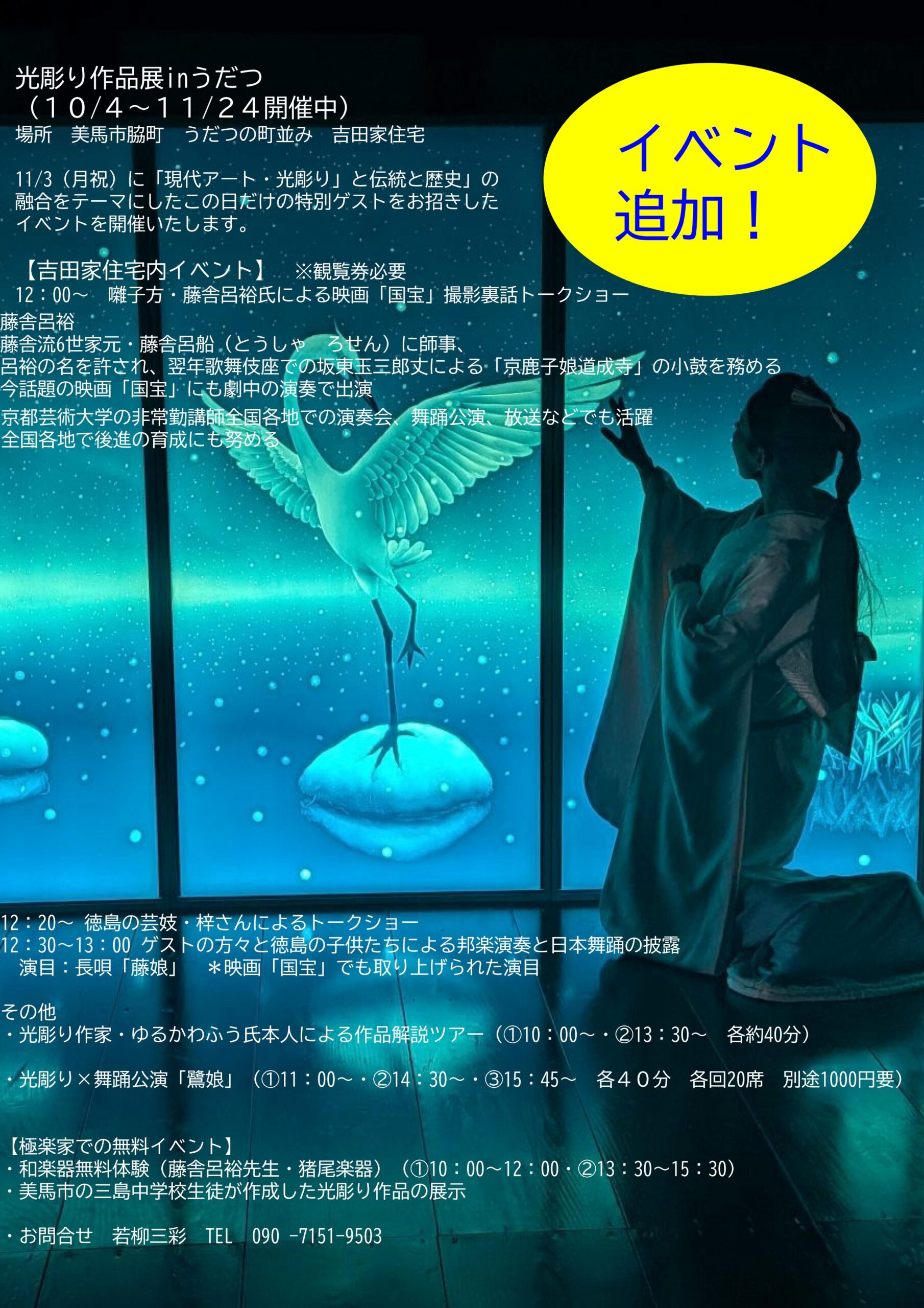 11月3日(月祝)に、「現代アート・光彫り」と「伝統と歴史」の融合をテーマにした