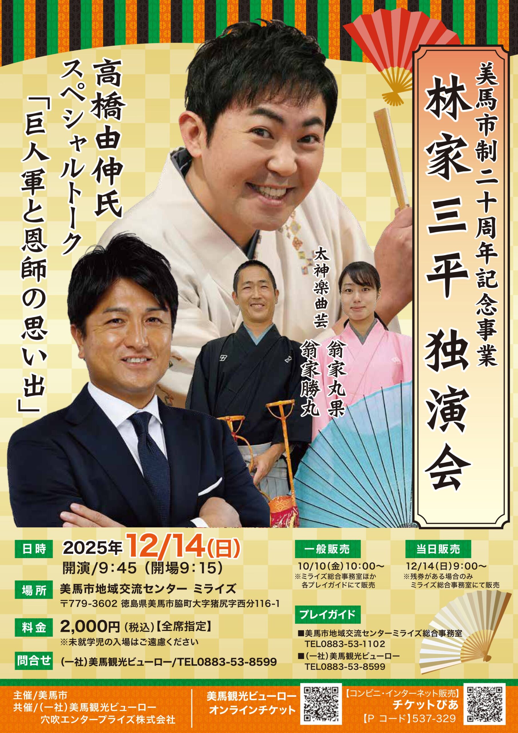 美馬市制二十周年記念事業「林家三平 独演会」開催のお知らせ